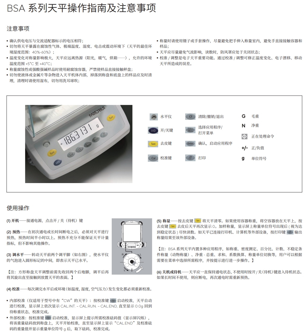 BSA 系列天平操作指南及注意事項