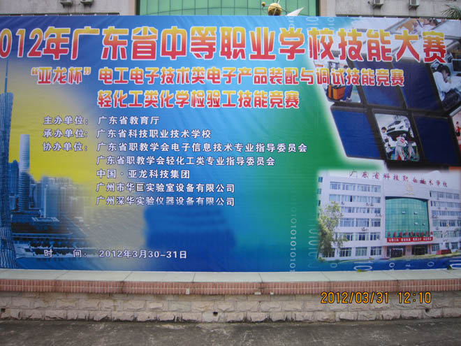 由廣東省教育廳主辦,廣州市深華實(shí)驗(yàn)儀器設(shè)備有限公司、廣州華巨實(shí)驗(yàn)設(shè)備公司協(xié)辦,廣東科技職業(yè)技術(shù)學(xué)校承辦的2012年廣東省中等職業(yè)技術(shù)學(xué)校技能大賽輕化工類化學(xué)檢驗(yàn)工技能競(jìng)賽于2012年3月30~31日在廣東科技職業(yè)技術(shù)學(xué)校成功舉行。